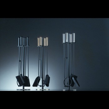 Firescreen in tempered glass and firetool set in stainless steel