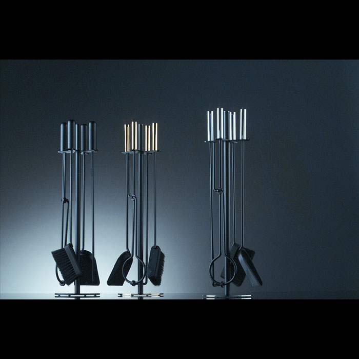 Fireplace toolset with base and handles in shiny polished stainless steel