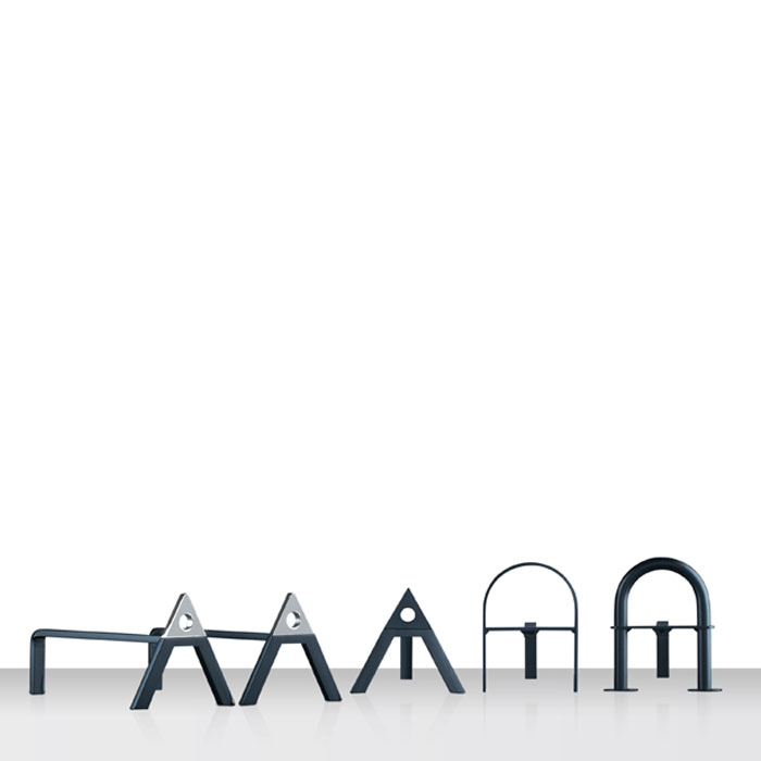 Paar Feuerböcke, schwarz mit gebürstetem Edelstahldreieick